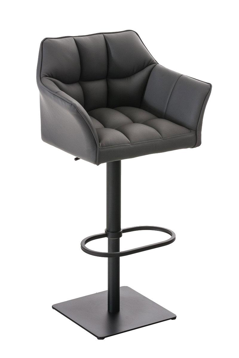Geschwungene Formen und modische Farben machen den Barhocker Damaso zu einem optischen Highlight an jeder Theke. Der sesselförmige Sitz überzeugt neben seiner modernen Optik durch seinen hohen Komfort, der durch umlaufend erhöhte Armlehnen und einer gepolsterten Rückenlehne gegeben ist. Der feine Kunstlederbezug steht in unterschiedlichen Farben zur Auswahl und bietet dadurch jede gestalterische Freiheit. Das kompakte Untergestell ist mit einer leichtgängigen Drehmechanik ausgestattet sowie durch einfache Hebelbedienung stufenlos höhenverstellbar. In der Mitte des Gestells befindet sich eine Fußablage die für eine korrekte Sitzhaltung wichtig ist.