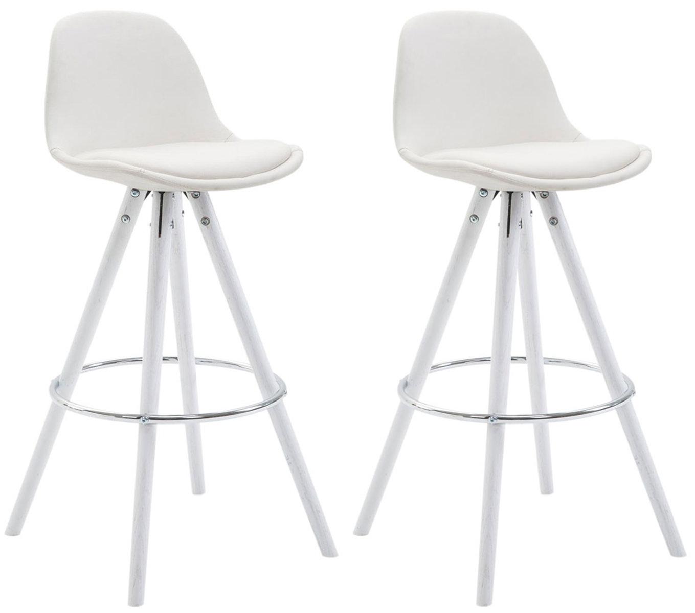 2er Set Barhocker Franklin vollgepolstert Kunstleder rund weiß (eiche) weiß bei anderen Anbietern