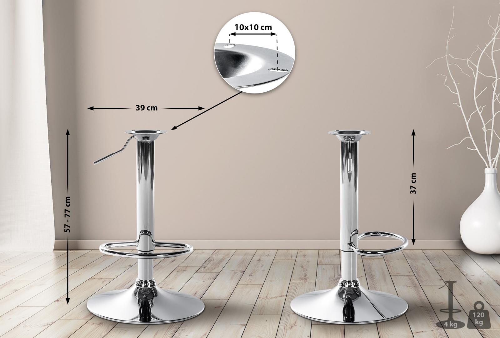 Der Lochabstand der Sitzaufnahme beträgt wahlweise 8 x 8 oder 10 x 10 cm, sodass Sitze mit diesen Abmessungen auf dem Gestell installiert werden können. Ist bei Ihrem Barhocker lediglich das Gestell defekt, sparen Sie sich somit den Neuerwerb eines vollständigen Hockers. Dieses Gestell ist mit vielen Barhockersitzen aus unserem Angebot kombinierbar.