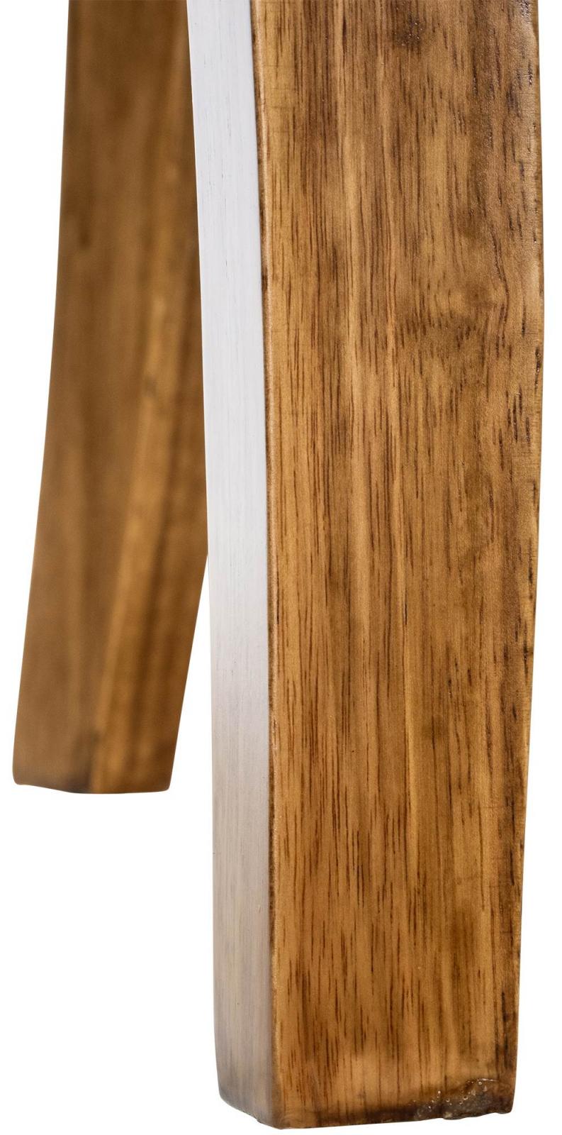 Die robusten, in Antik-Optik gehaltenen Holzfüße sorgen für Stabilität und Belastbarkeit und die Bodenschoner schützen empfindliche Böden vor Beschädigungen. Dank seiner pflegeleichten Oberfläche bleibt der Polsterstuhl lange schön und einladend.