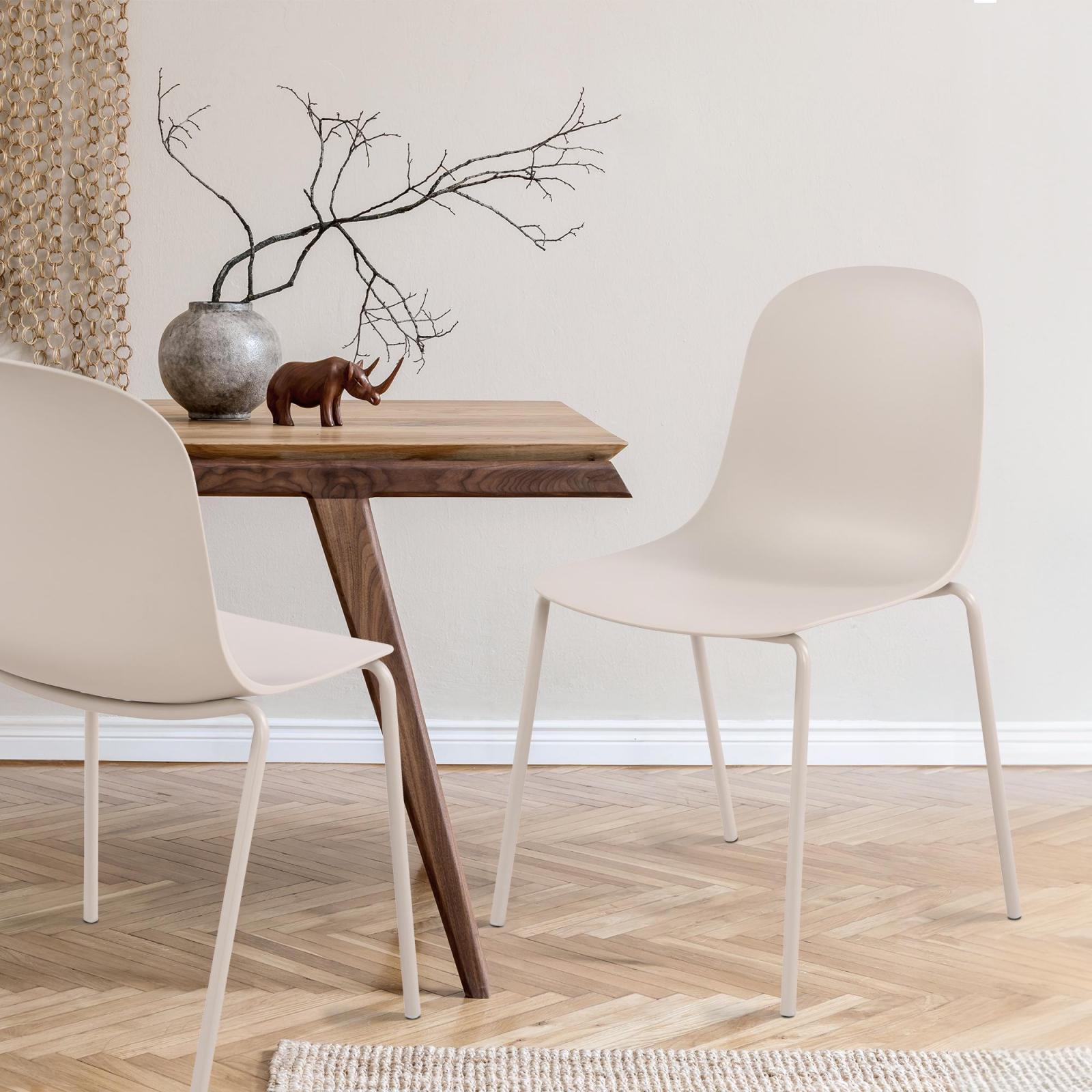 Die Sitzschale besteht aus stabilem, UV-beständigem, wetterfestem Polypropylen, einem hochwertigen Kunststoff. Das Stuhlgestell ist aus pulverbeschichtetem Stahl gefertigt, sodass es korrosionsbeständig ist und nicht rostet. Die Farben von Sitzschale und Stuhlgestellen sind aufeinander abgestimmt.