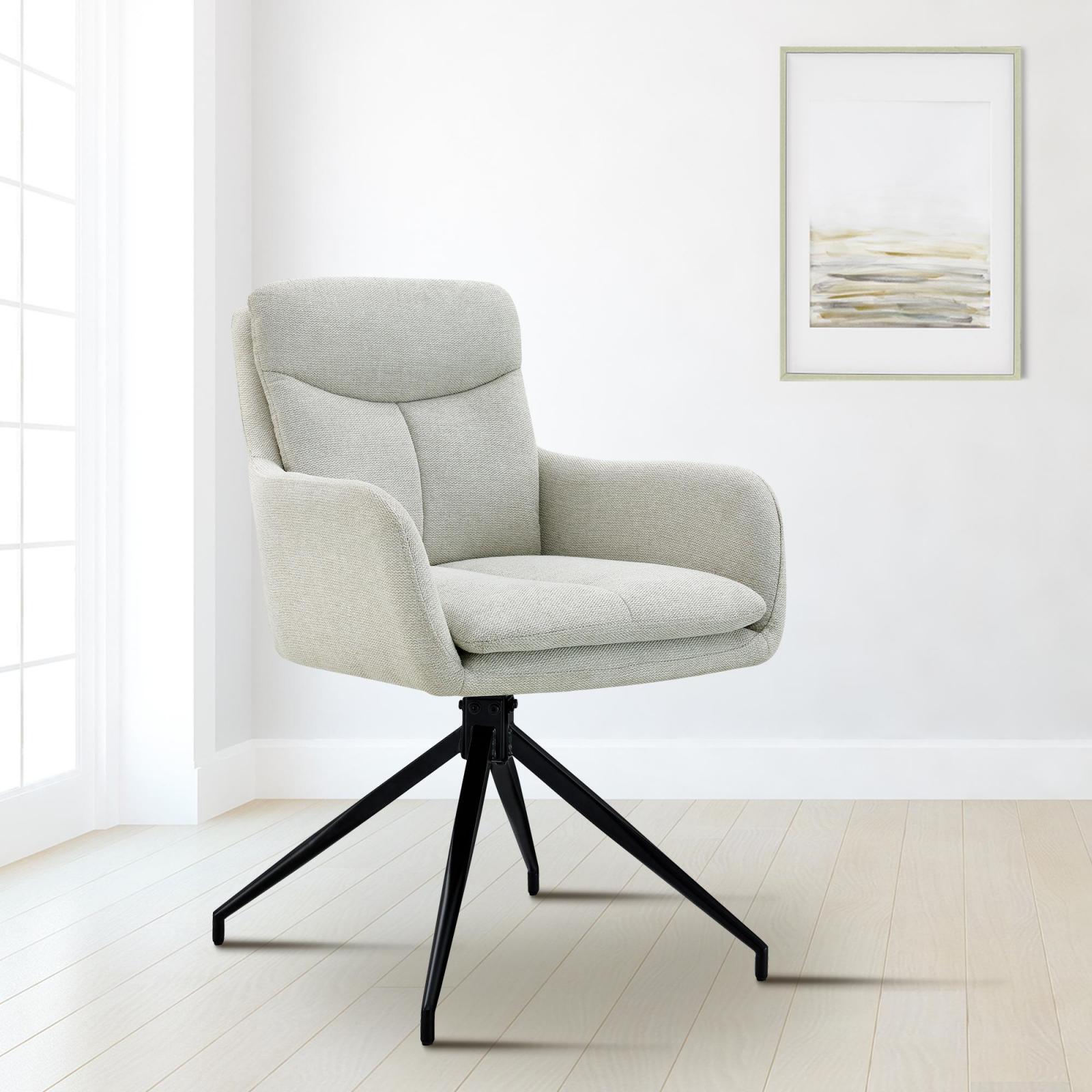 Der drehbare Esszimmerstuhl Somers Stoff kombiniert stilvolles Design und Komfort. Er eignet sich ideal für Küche, Esszimmer und Lounge. Der hochwertige, strapazierfähige Stoffbezug bietet eine angenehme Haptik und bleibt auch bei täglicher Nutzung gemütlich. Die weiche dick gepolsterte Sitzfläche sorgt für Komfort bei langen Mahlzeiten und lädt zum Verweilen ein.